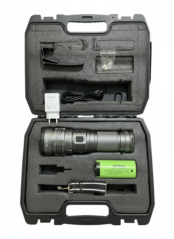 Q-MAX PS-4100 model el feneri, Q-MAX markasının yüksek performanslı ve profesyonel kullanıma yönelik serisindeki en güçlü modellerden biridir.
